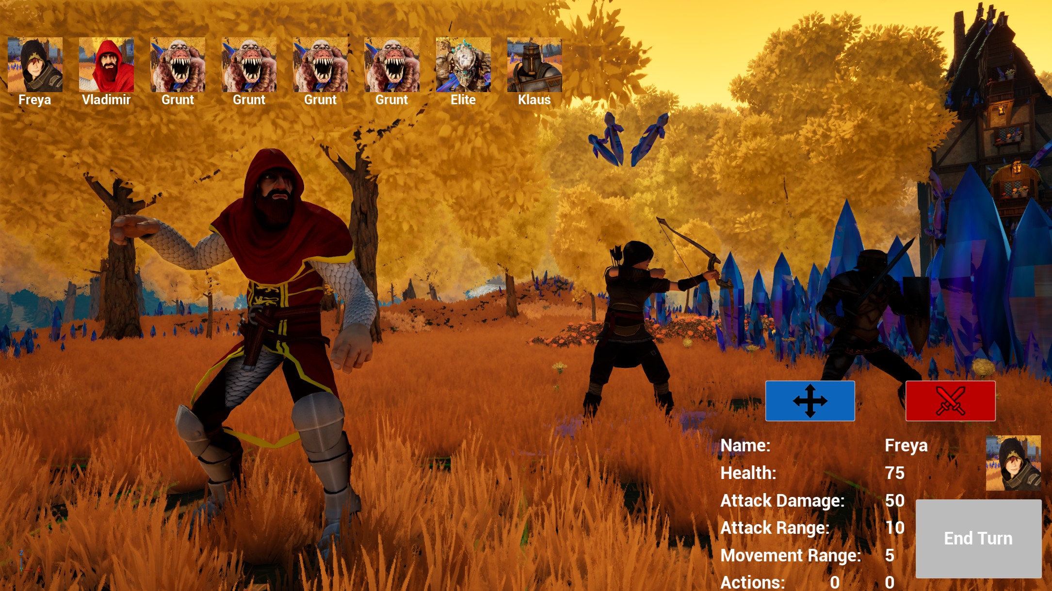 Mysterious crystals have corrupted the land, twisting creatures into dangerous enemies. As the commander of a small group of heroes, you must navigate the battlefield, plan each move, and use your units’ unique abilities to defeat the corrupted foes.